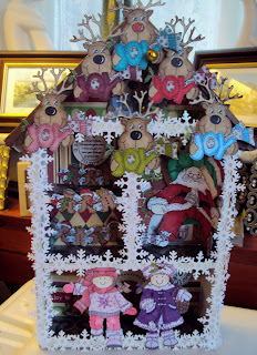 Here a view of the front of the advent house which does not fit into the challenge, but I thought I would show it you. Have you spotted the dual use of the reindeer antlers ?